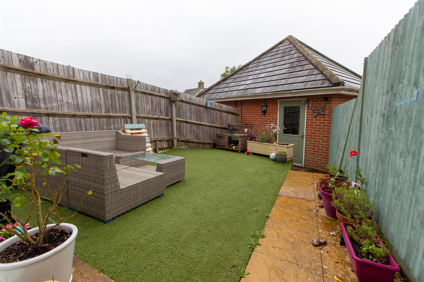 The rear garden offers a southerly aspect . It is laid mainly to lawn with an area of patio. The garage is accessed via the rear of the property.