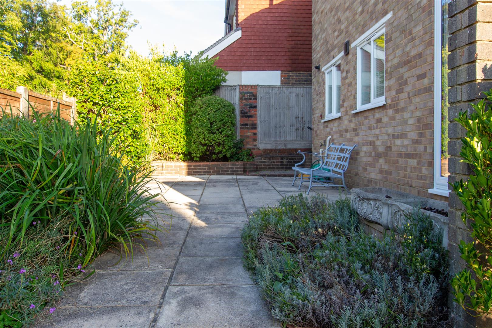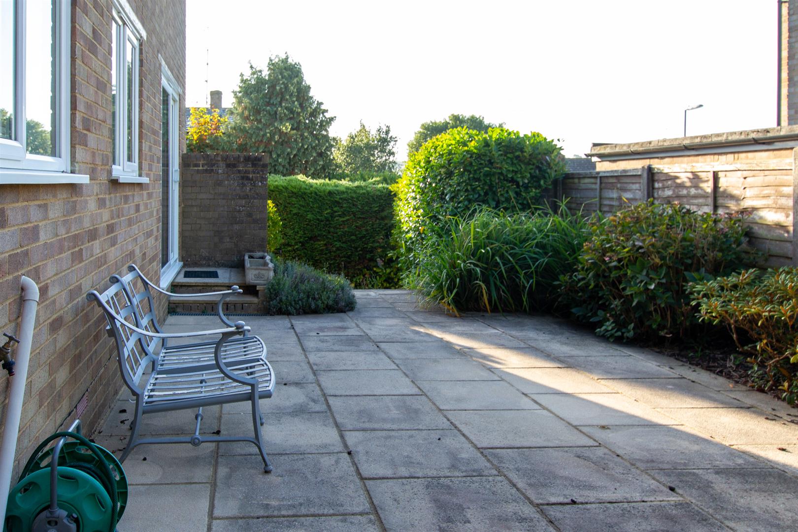 The property benefits from a private South - facing garden comprising a paved patio area, ideal for outdoor seating or dining, and a lawned grass area.
