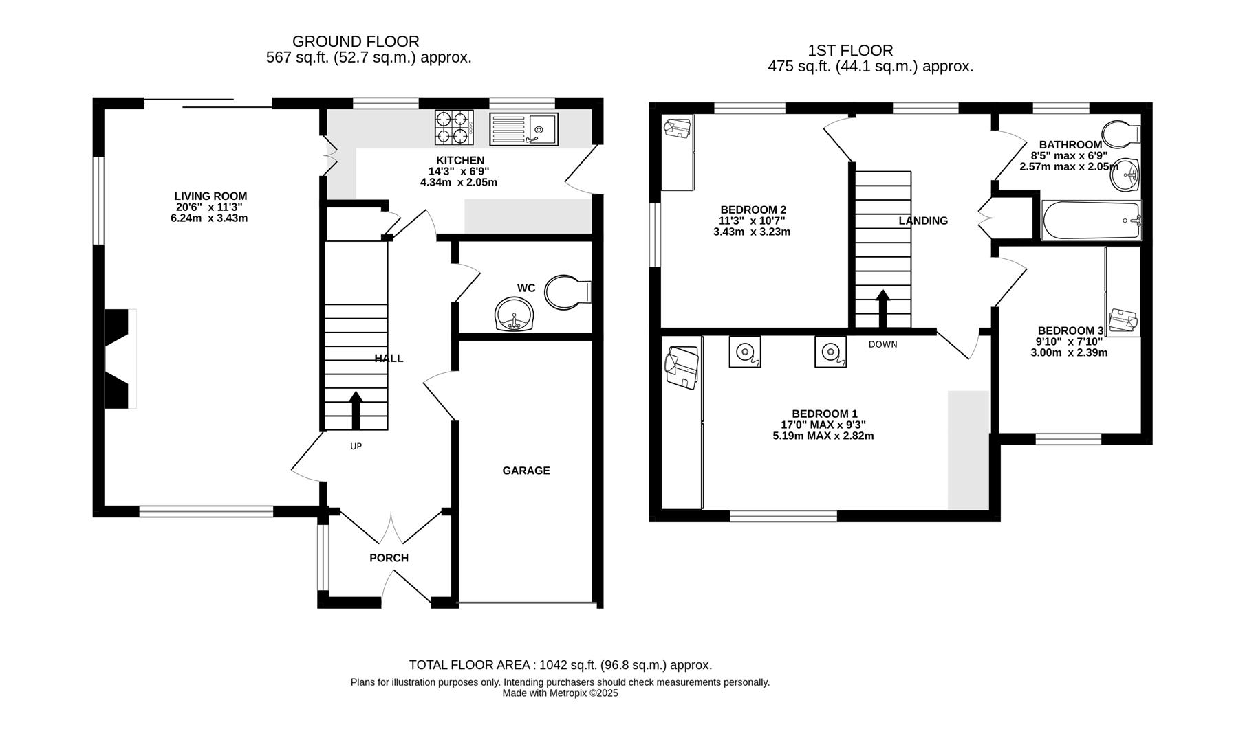 The first floor has three double bedrooms, the main bedroom with fitted wardrobes, the second and third have free standing wardrobes. There is also a bathroom with overhead shower.