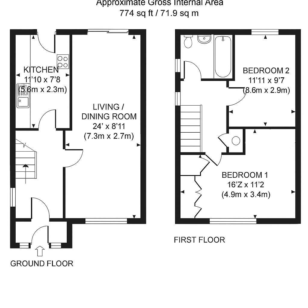 There are two generously sized double bedrooms, with the main bedroom benefiting from built-in wardrobes. The family bathroom has been modernised and finished in a neutral, clean style.