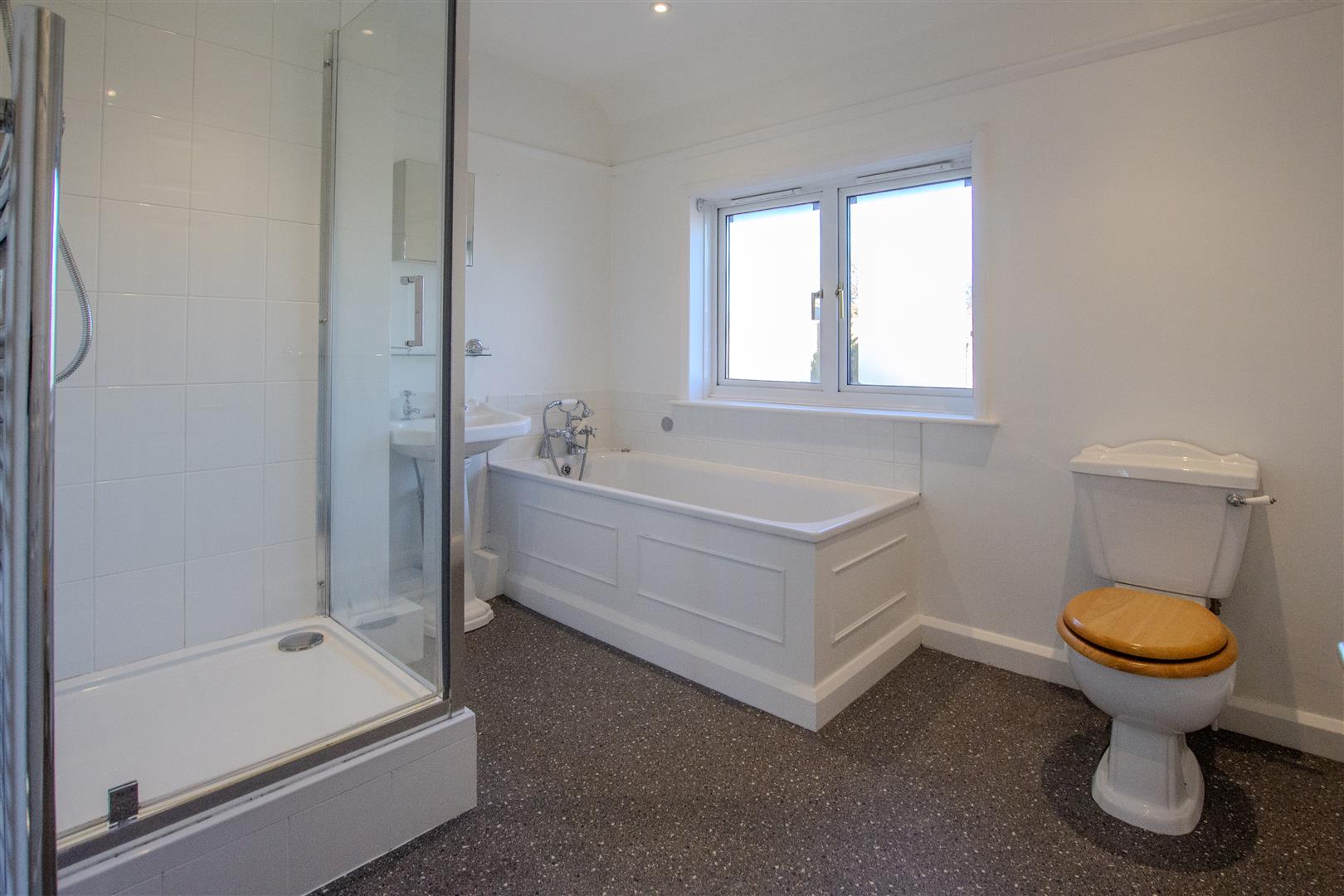 On the first floor is a spacious central landing leading to two double bedrooms and a large family bathroom suite and a separate shower cubicle.